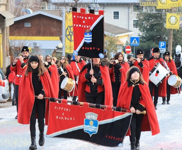 Insignito dell'onorificenza di Senatore del Carnevale per la fedele partecipazione alle sfilate del nostro carnevale, il Gruppo dei Pifferi e Tamburi di Andrate, costantemente presente sin dall'anno 1972, è considerato ormai un elemento immancabile della manifestazione. Il gruppo allieta, con il suono delle ‘pifferate’ che compongono il suo repertorio, tutte le giornate di festa e va considerato come vera e propria parte integrante del corteo storico, preannunciando l'arrivo del carro della Ninfa.